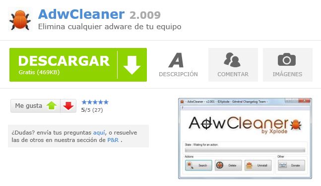 AdwCleaner es una herramienta de seguridad muy fácil de usar que nos permitirá librarnos de todo el adaware de nuestro equipo en cuestión de segundos con tan solo hacer un análisis rápido.